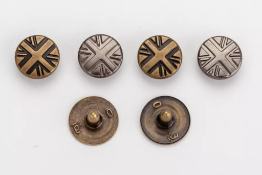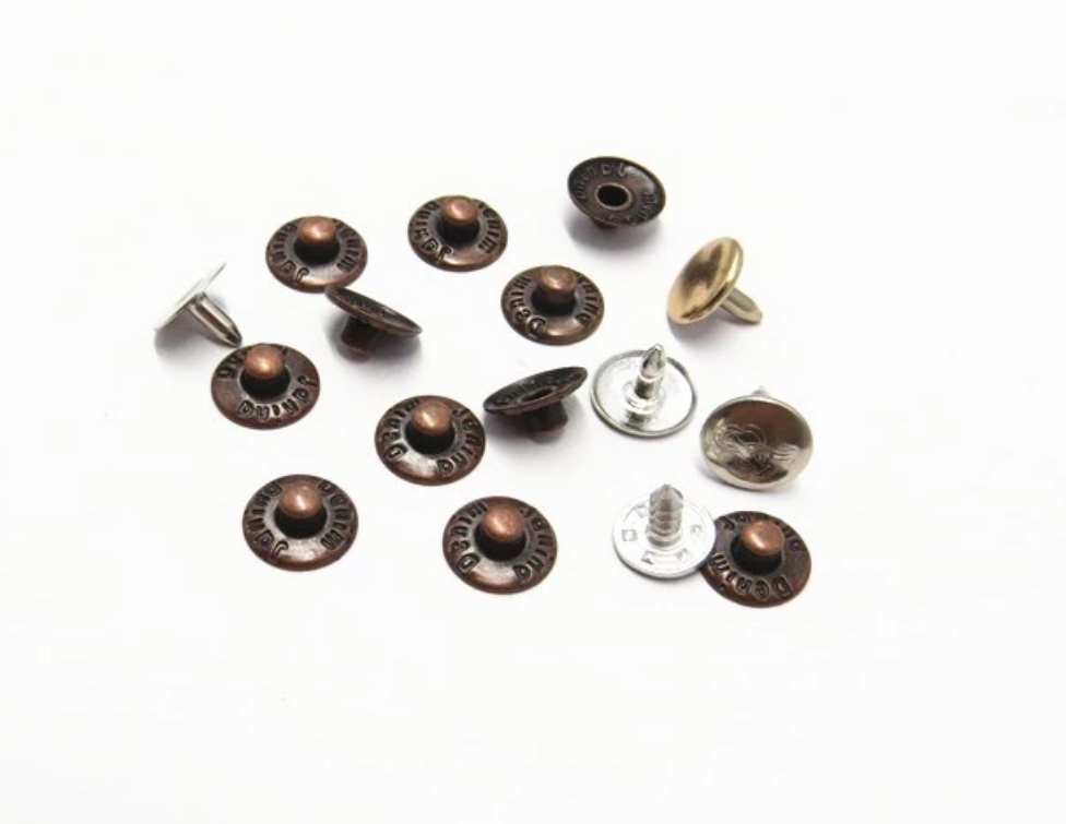 Bouton-pression, bouton de jean, bouton en alliage, boucle en alliage, étiquette en métal, bouton-pression à broche, bouchon, bouton-pression à anneau, rivet, œillets, etc. |